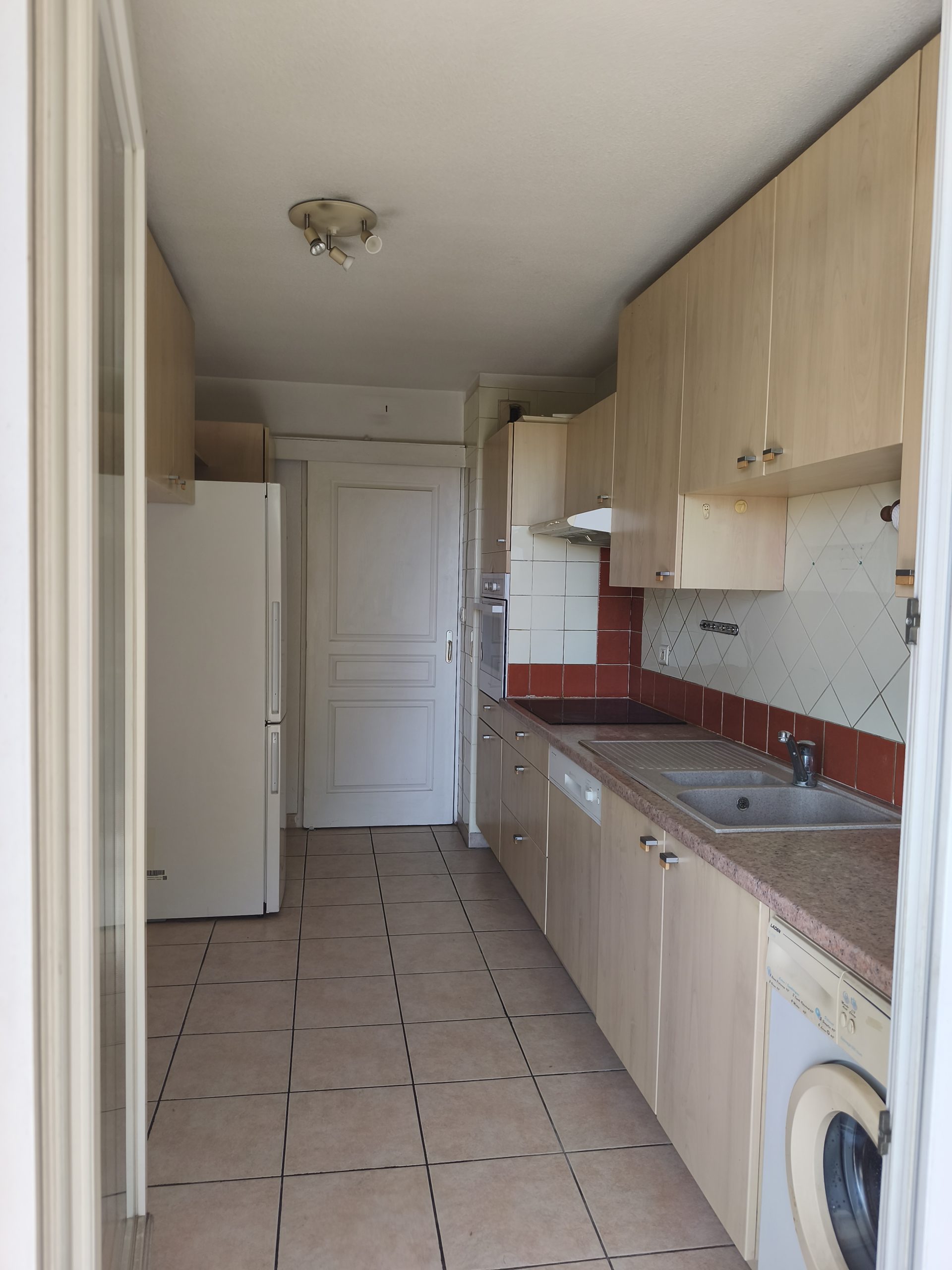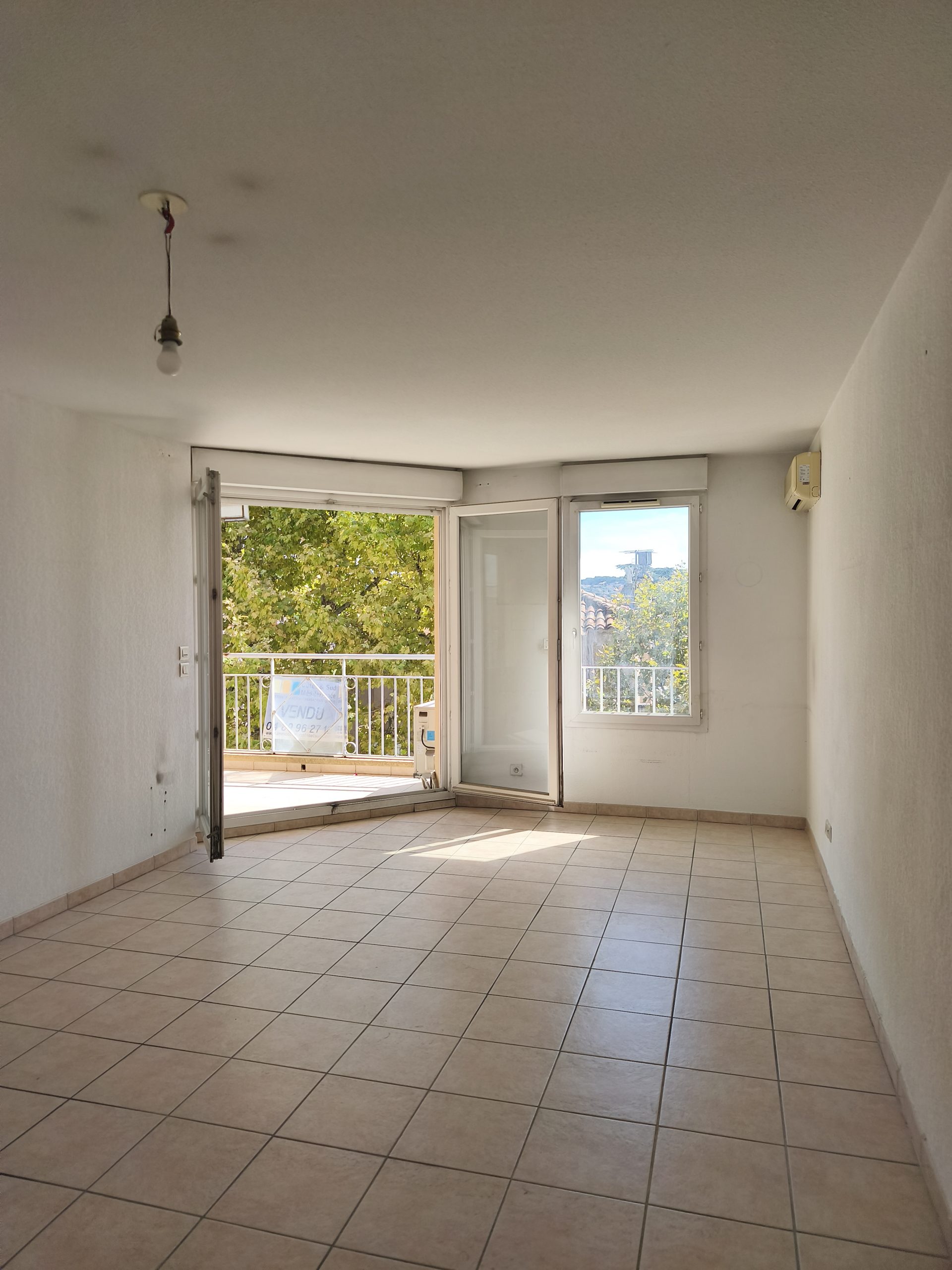 Hall d’ Entrée avec spacieux placard/penderie, séjour avec clim donnant sur terrasse, cuisine séparée aménagée et équipée ( éventuellement ouvrable sur le séjour pour en faire une cuisine américaine), le tout donnant également sur terrasse. Dégagement desservant salle d’eau/ wc séparé, et deux belles chambres avec placards/penderie.